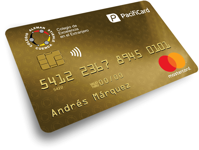 Por las compras realizadas a través de esta tarjeta, obtén beneficios adicionales exclusivos y aportas un porcentaje de tus consumos al Colegio Alemán Stiehle de Cuenca. Tu tarjeta Mastercard PacifiCard es aceptada en más de 30 millones de establecimientos afiliados en Ecuador y alrededor del mundo; también puedes hacer compras en internet y acceso a avances en efectivo en más de 820.000 cajeros automáticos en el mundo a través de la red Cirrus.